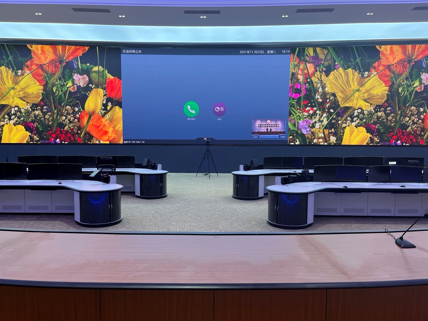 中國(guó)石油集團(tuán)安全環(huán)保技術(shù)研究院1層視頻會(huì)議室創(chuàng)新型的運(yùn)用0.93mmLED顯示屏,不僅滿足單位召開(kāi)視頻會(huì)議室使用,同時(shí)可用于超高分圖像的展示工具,對(duì)研究院研發(fā)團(tuán)隊(duì)成果展示、實(shí)驗(yàn)過(guò)程分析提供保障。同時(shí)對(duì)現(xiàn)有視頻會(huì)議功能進(jìn)行升級(jí),由原來(lái)模擬、標(biāo)清視頻會(huì)議形式升級(jí)為高清、4K會(huì)議,